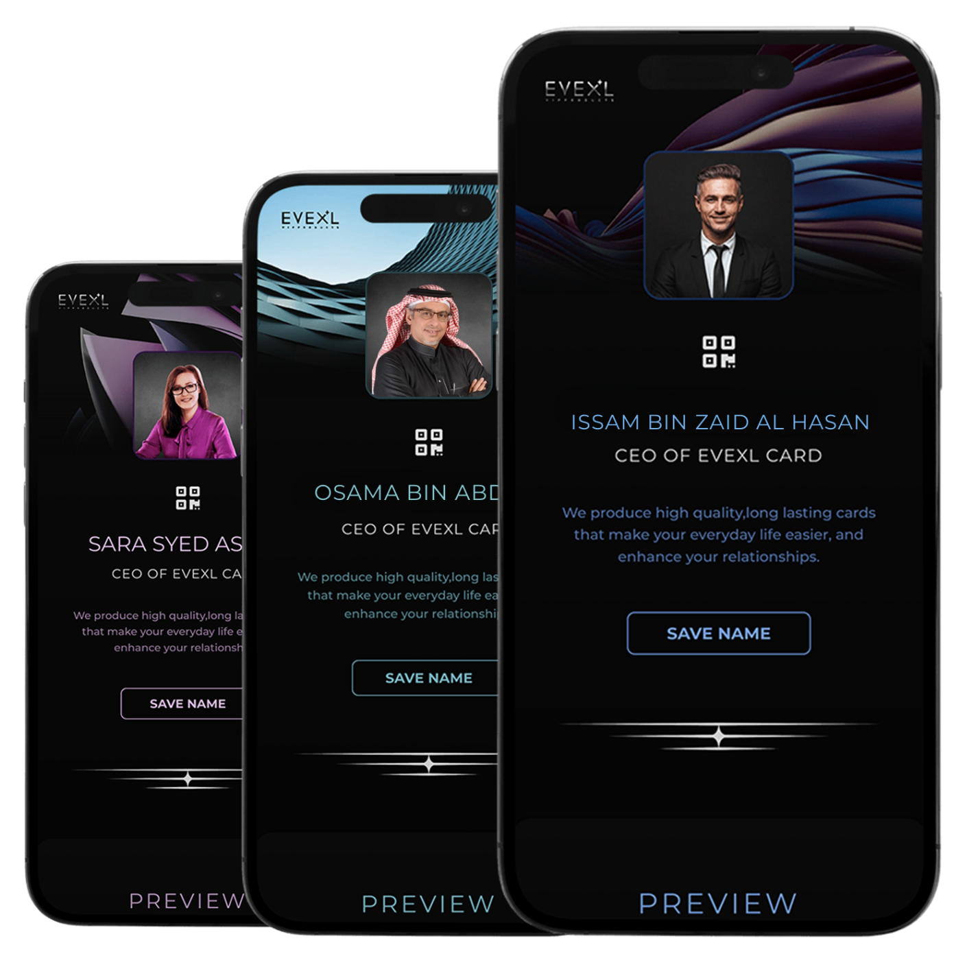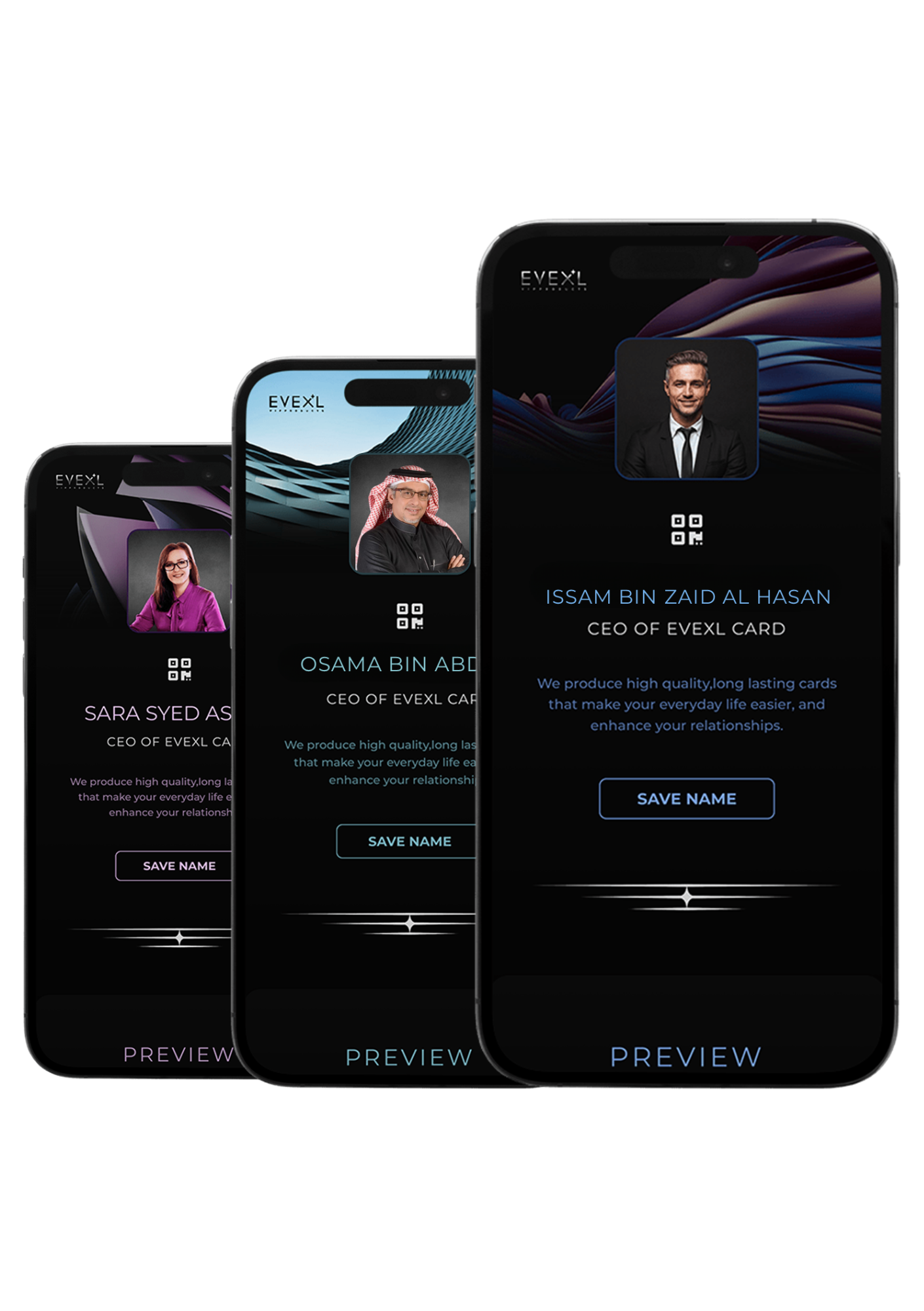 The EVEXL card acts as a virtual storage space for all desired data forms to be exchanged with others, in an easy, safe and adjustable carry way all the time.